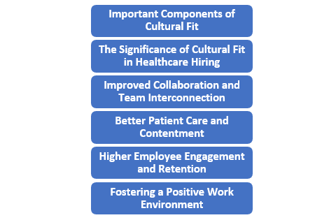 Ensuring that healthcare workers share the beliefs, attitudes, and behaviors that complement the organization’s culture is known as cultural fit. It covers a wide range of topics, such as communication styles, job ethics, and patient care ideologies.
